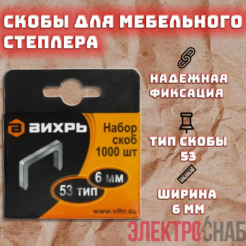 73/9/2/1 | Скобы для мебельного степлера (6мм тип скобы 53) (уп.1000шт) Вихрь