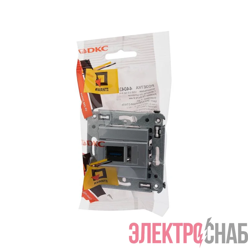 4404303 | Розетка USB 3.0 1-м СП Avanti "Закаленная сталь" тип А-А DKC