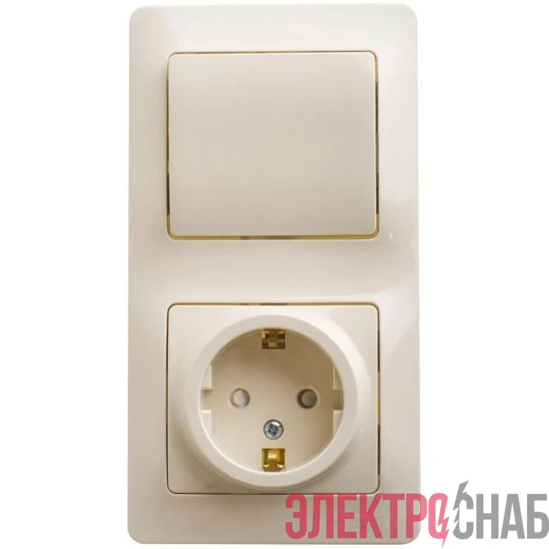 GSL000270 | Блок комбинированный GLOSSA розетка защ. штоки с заземл. + выкл. 1-кл. беж. SchE