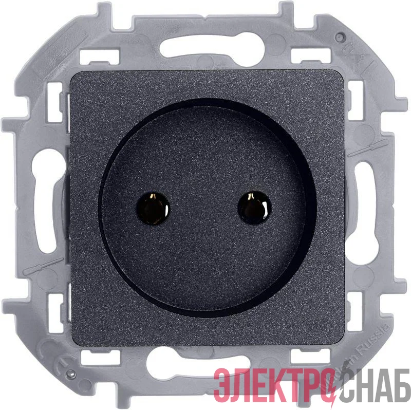 Розетка без заземления для скрытого монтажа Inspiria, цвет "Антрацит", максимальный ток 16А, напряжение ~250В, максимальная мощность 3680Вт, винтовые зажимы. Применяется для присоединения однофазных электрических потребителей к сети переменного тока в зданиях с проводкой без заземления (без защитного проводника).