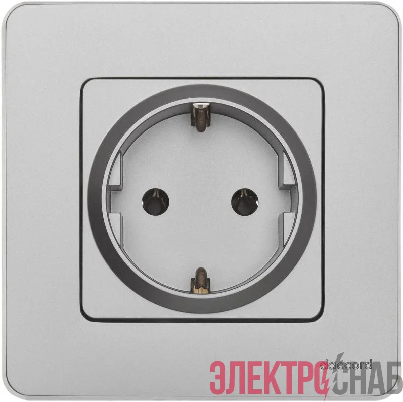 Розетка с заземлением для скрытого монтажа Inspiria, цвет "Алюминий", максимальный ток 16А, напряжение ~250В, максимальная мощность 3680Вт, винтовые зажимы. Применяется для присоединения однофазных электрических потребителей к сети переменного тока в зданиях с проводкой с заземлением (с защитным проводником).