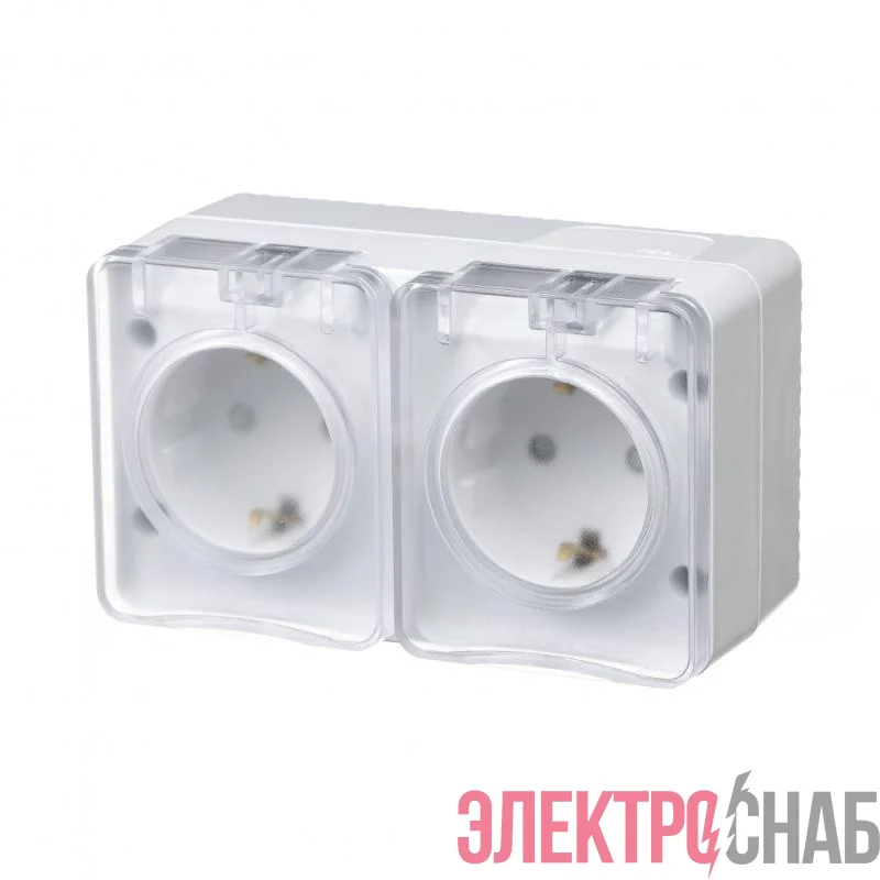 Розетка двойная с заземлением со шторками для открытого монтажа, 16А, 250В.