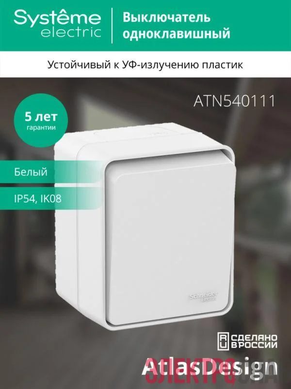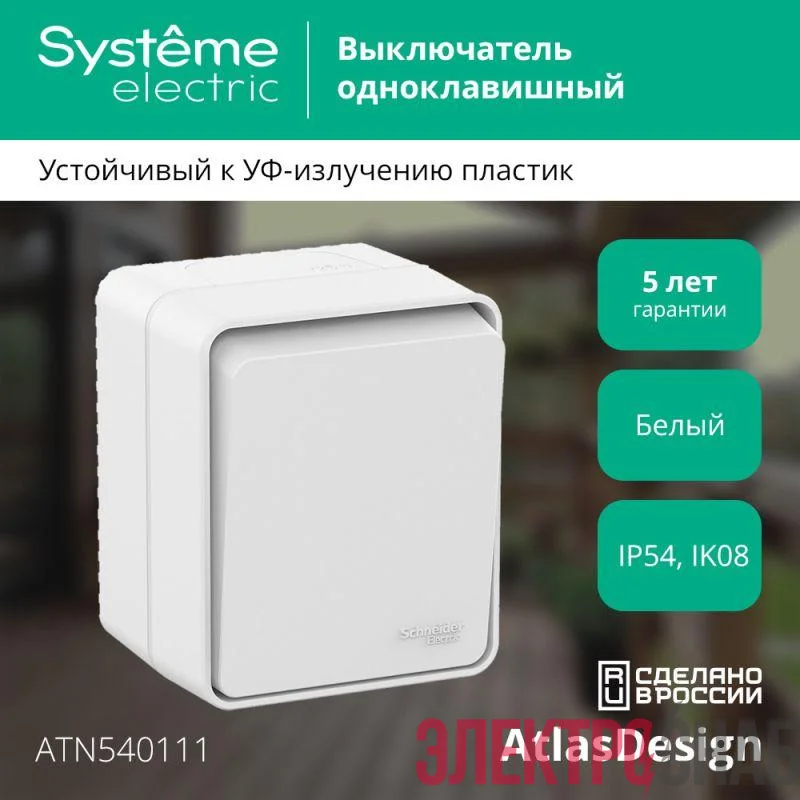 Выключатель 1-кл. ОП AtlasDesign Profi54 IP54 10AX бел. SE ATN540111
