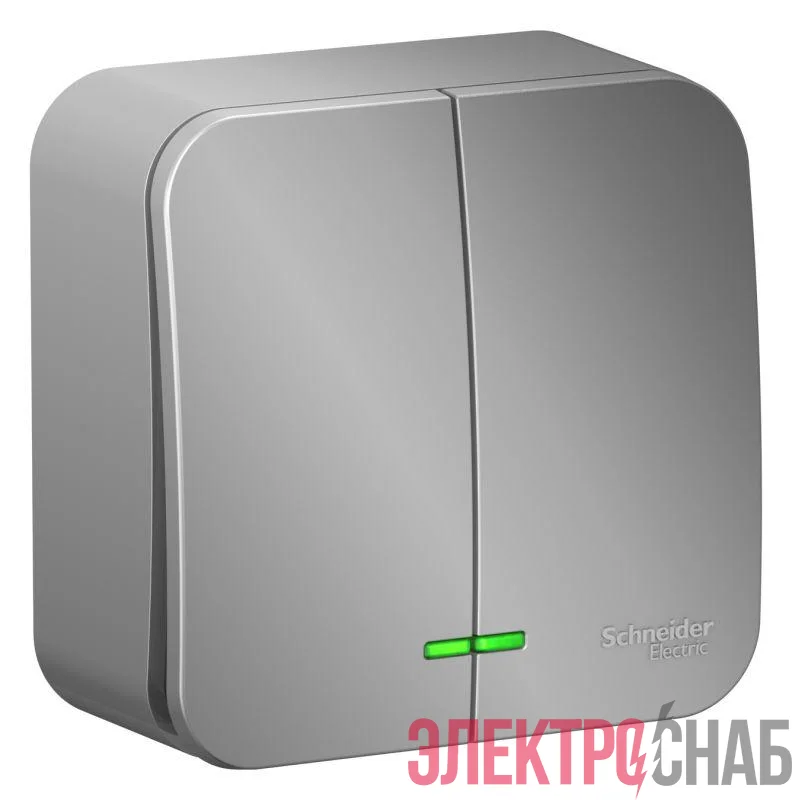 BLNVA105113 | Выключатель 2-кл. ОП Blanca 10А IP20 (сх. 5) 250В с подсветкой с изолир. пластиной алюм. SE