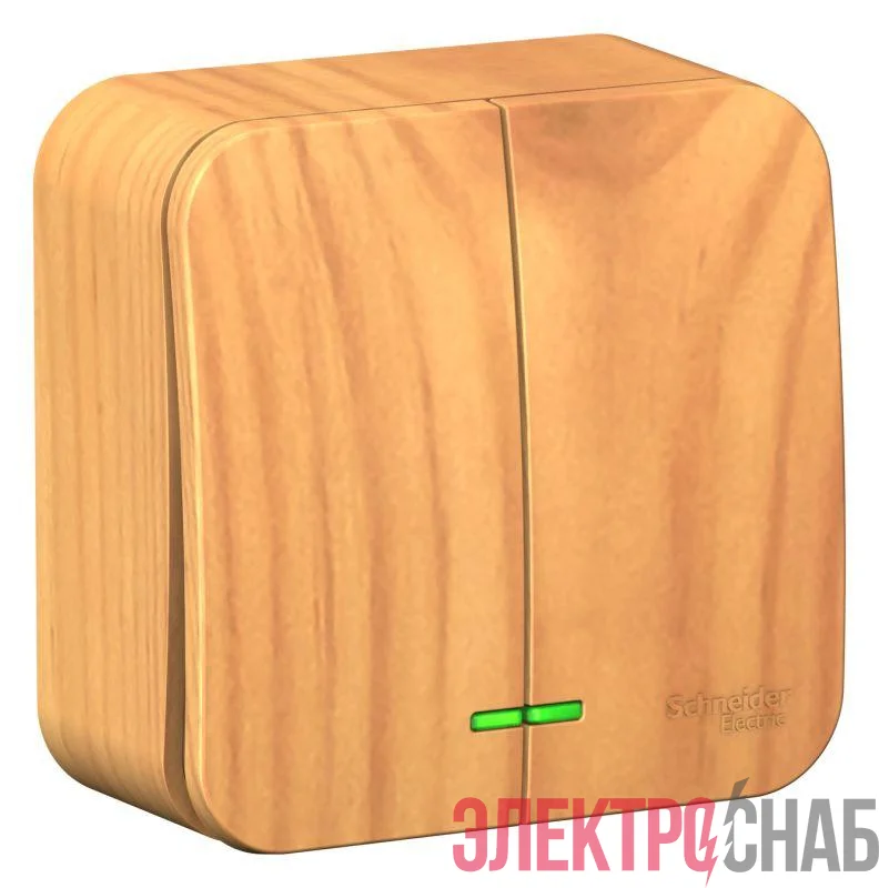 BLNVA105115 | Выключатель 2-кл. ОП Blanca 10А IP20 (сх. 5) 250В с подсветкой с изолир. пластиной ясень SE