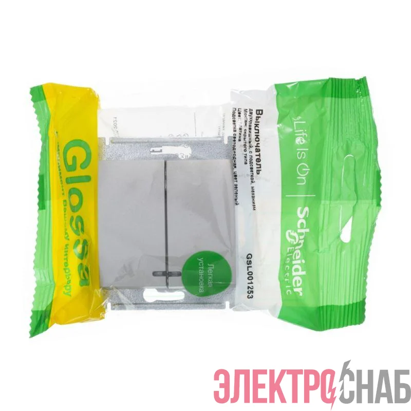 GSL001253 | Выключатель 2-кл. СП Glossa 10А IP20 (сх. 5а) 10AX с подсветкой механизм платина SE