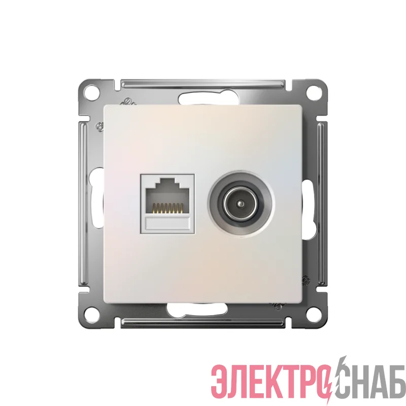 ATN000489 | Розетка компьютерная + телевизионная 2-м AtlasDesign RJ45 кат.5E + TV механизм жемчуж. SE
