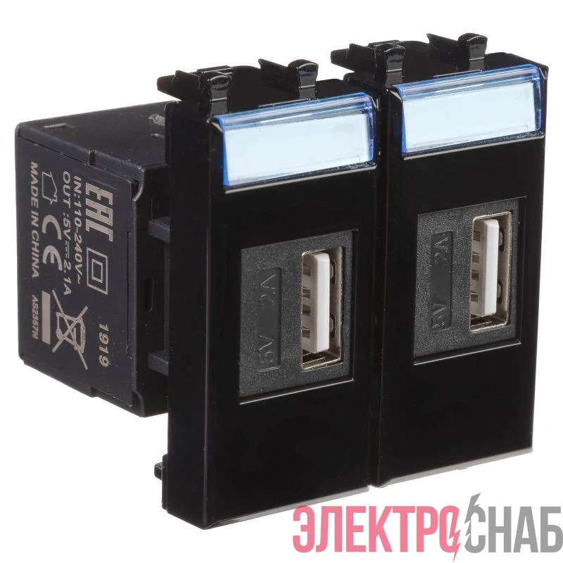 Устройство зарядное USB 2мод. 2.1А Avanti "Черный квадрат" DKC 4402542