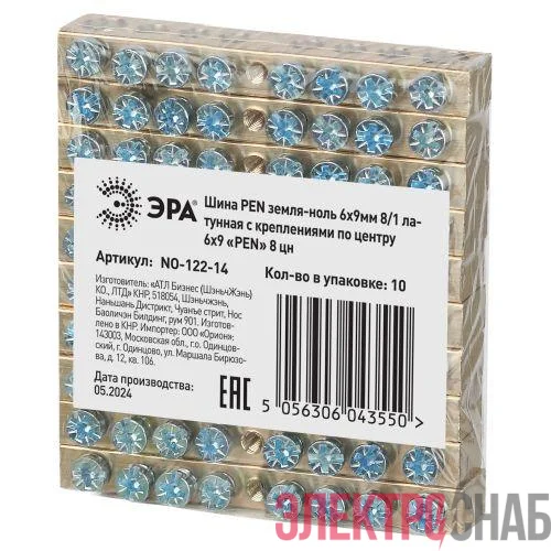 Б0047228 | Шина NO-122-14 PEN "земля-ноль" 6х9мм 8/1 с креплениями по центру латунь ЭРА