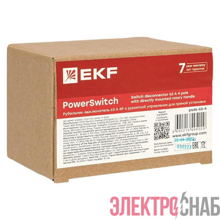 psds-63-4 | Рубильник-выключатель 4п 63А с рукояткой управления для прямой установки PowerSwitch EKF