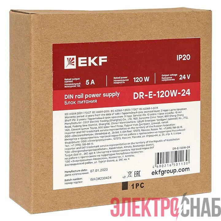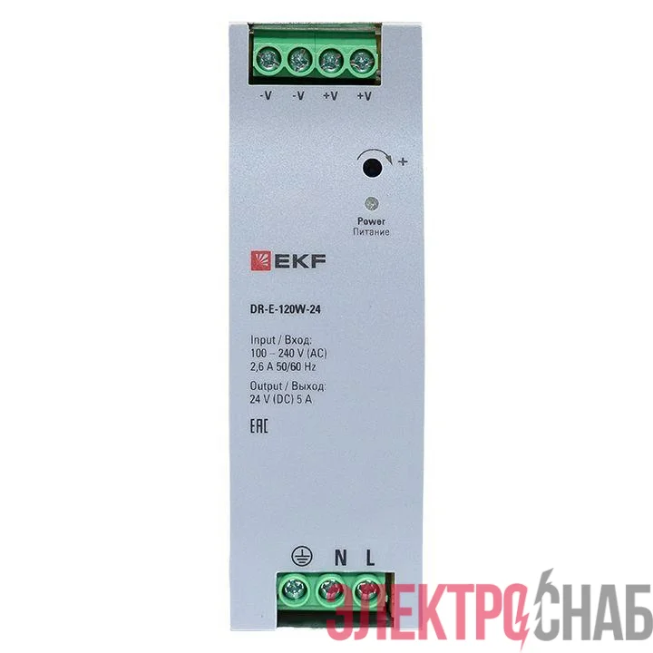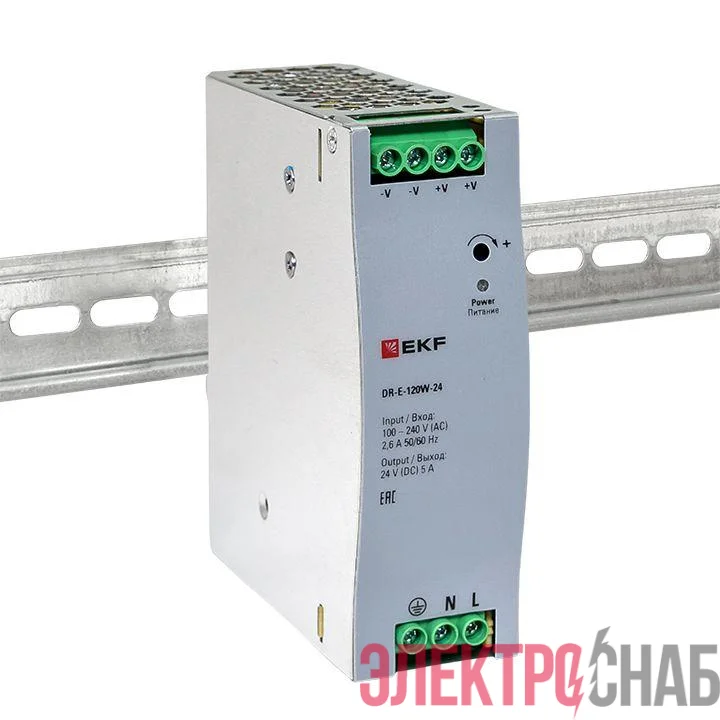 DR-E-120W-24 | Блок питания на DIN-рейку 120Вт Uвх ~ 220В AC Uвых - 24В DC постоянного тока EKF