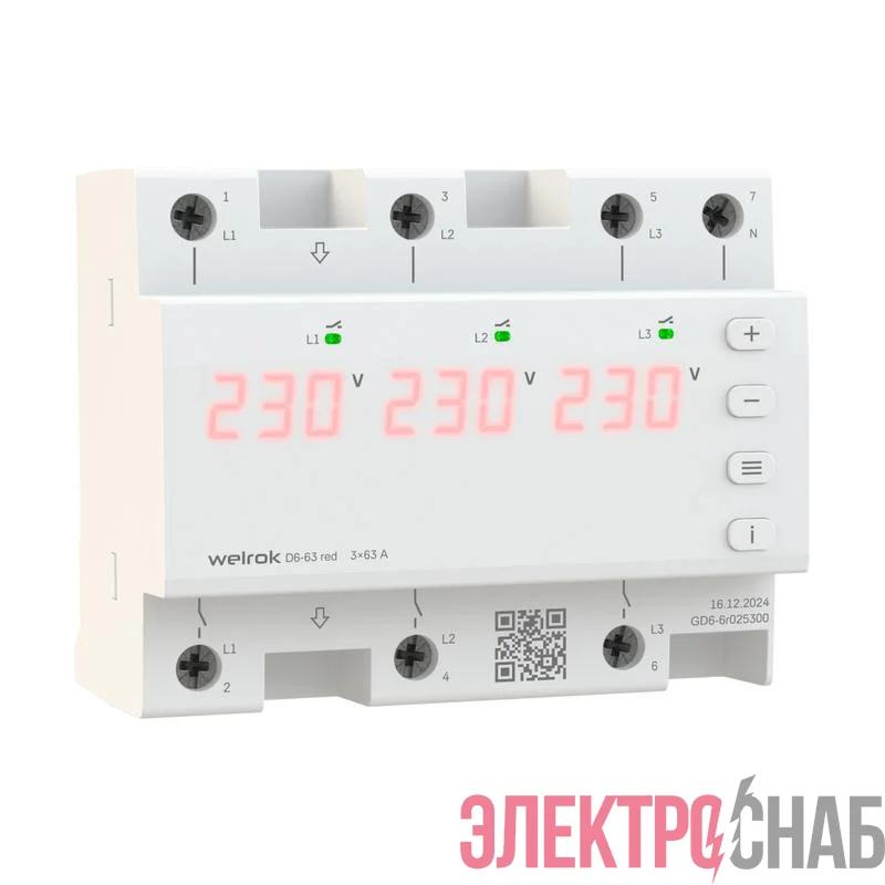 4660251140410 | Реле напряжения D6-63 red Welrok