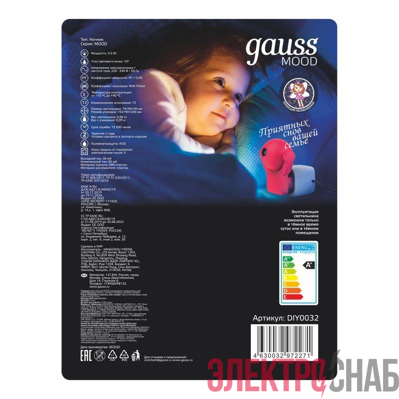 DIY0032 | Светильник розеточный MOOD 0.5Вт с фиксированной проекцией датчик освещенности роз. GAUSS