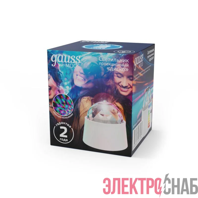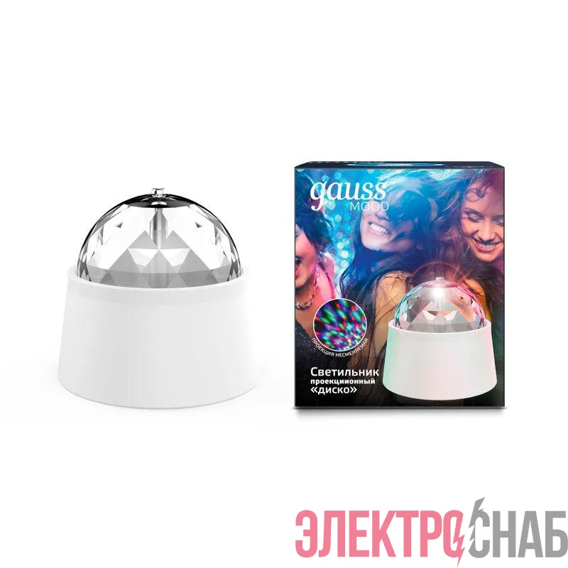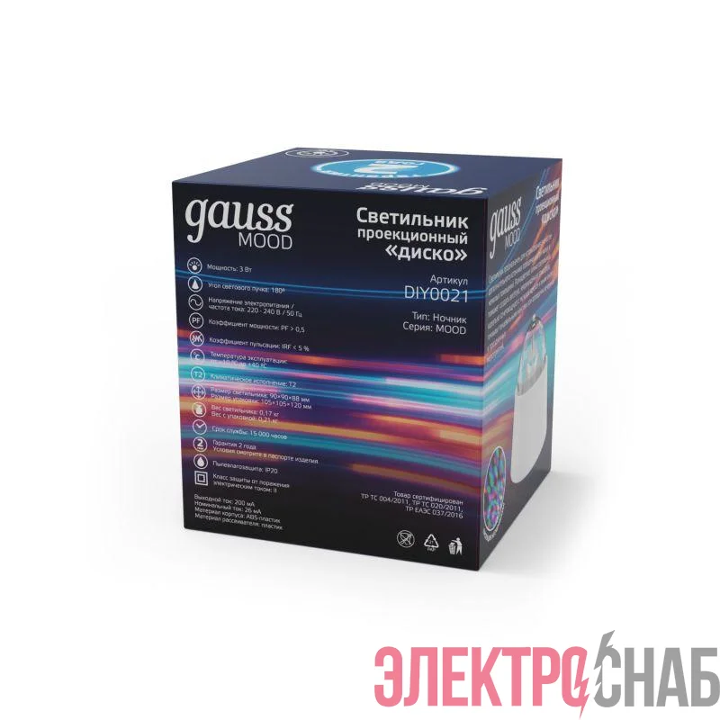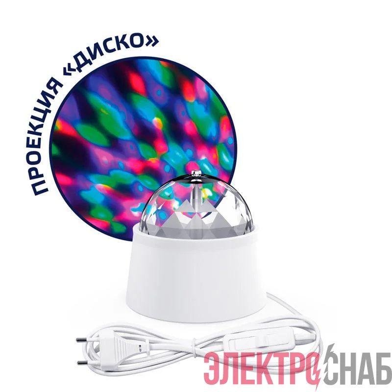 DIY0021 | Светильник светодиодный Mood 3Вт диско с фиксированной проекцией с кабелем электропитания и выкл. бел. GAUSS