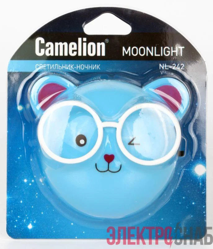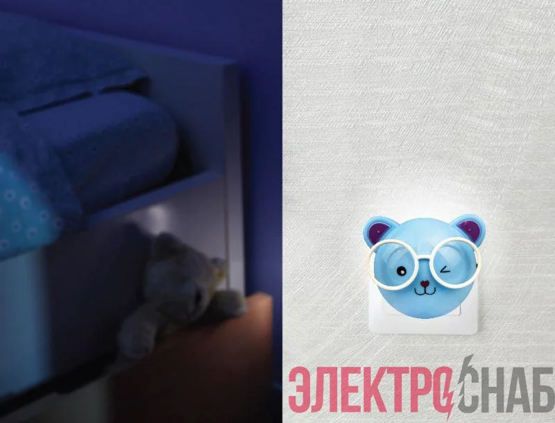 13817 | Светильник светодиодный NL-242 "Медведи очкарики" 220В ночник с выкл. син. Camelion