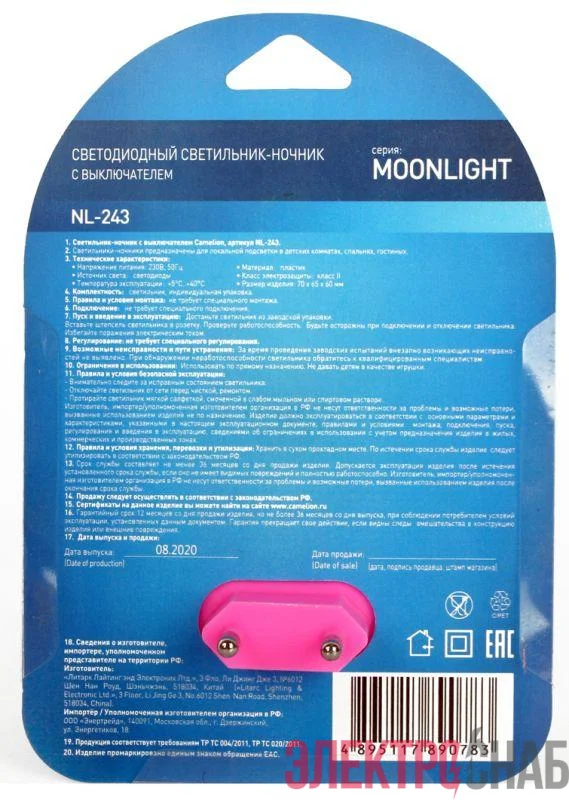 14263 | Светильник "Сова" NL-243 LED ночник с выкл. 220В Camelion