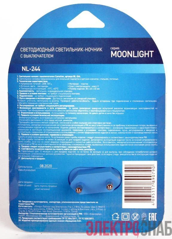 14264 | Светильник "Месяц" NL-244 LED ночник с выкл. 220В Camelion