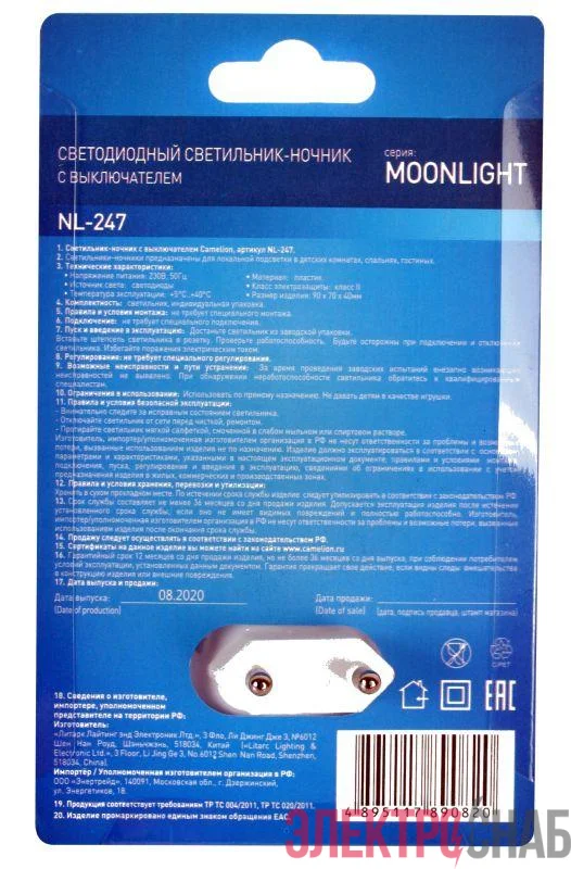 14267 | Светильник "Волан" NL-247 LED ночник с выкл. 220В Camelion