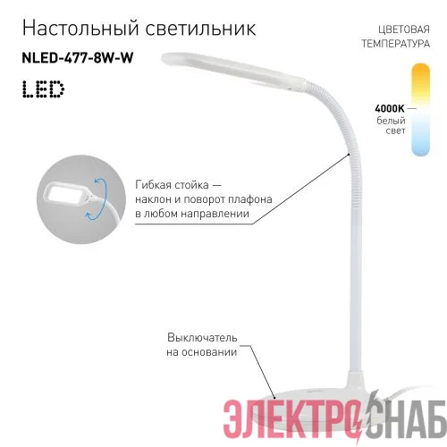 Б0041082 | Светильник NLED-477-8W-W настольный бел. ЭРА