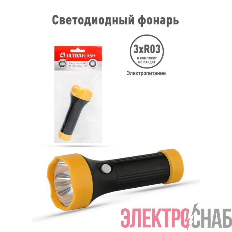 11785 | Фонарь 5002-ТН (4LED 1 реж 3XR03 ; блист-пакет; черн.) Ultraflash