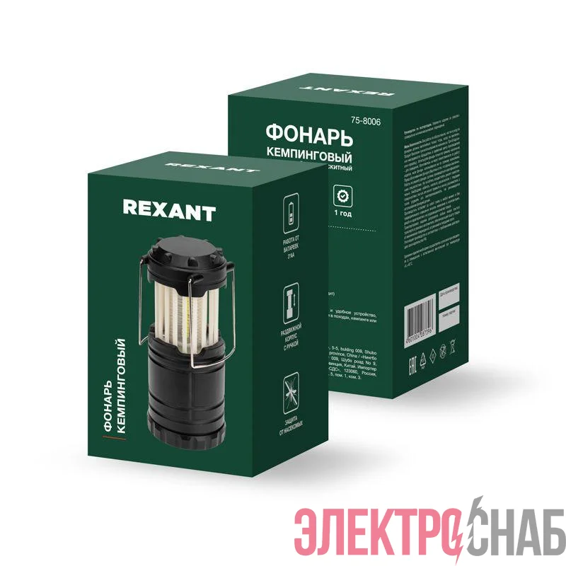 75-8006 | Фонарь кемпинговый раздвижной антимоскитный на подвесе Rexant