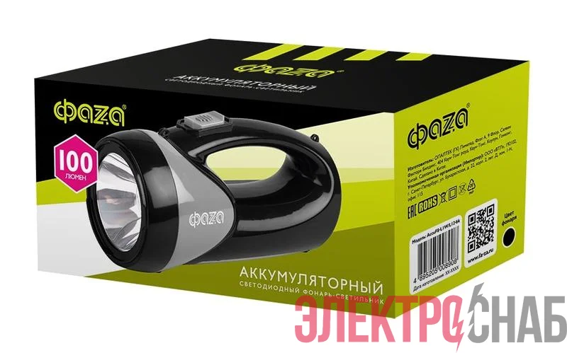5008908 | Фонарь прожектор AccuF8-L1W/L12-bk ФАZА 489520