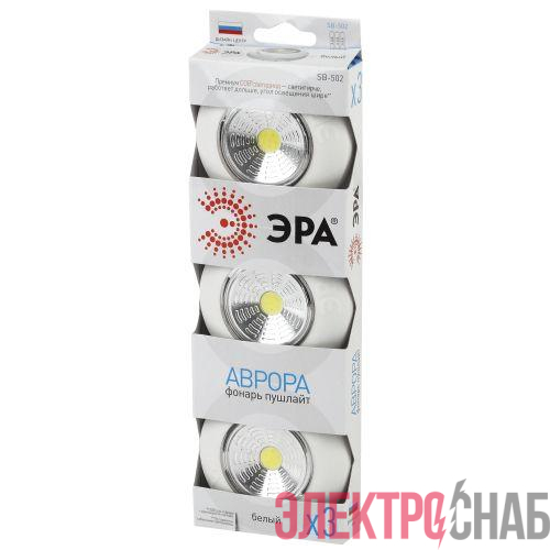 Б0031041 | Фонарь SB-502 NEW пушлайт "Аврора" COB 3хAAA бел. (уп.3шт) ЭРА
