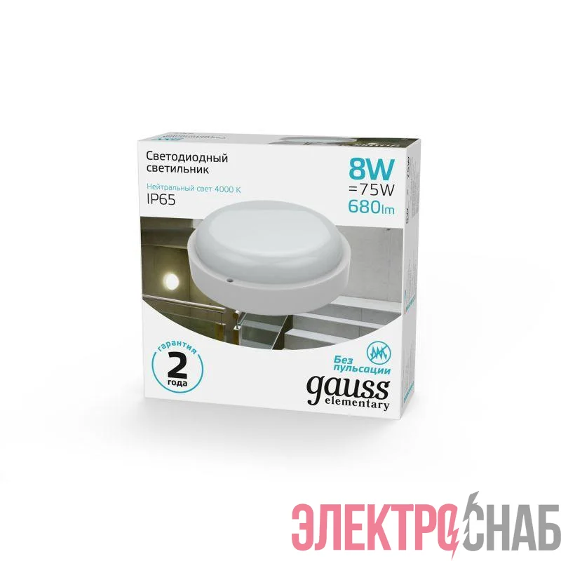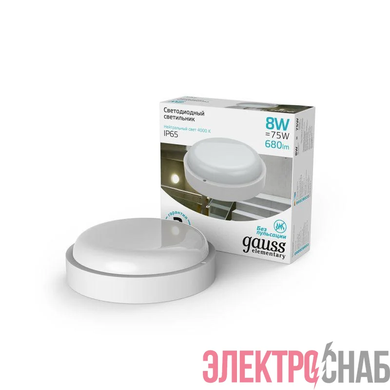 126411208 | Светильник светодиодный Elementary 8Вт 4000К IP65 800лм d140х48мм ДБП круг настен./потолочн. GAUSS