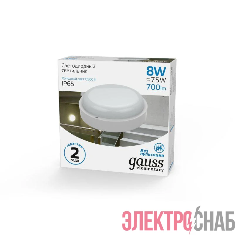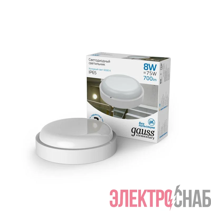 126411308 | Светильник светодиодный Elementary 8Вт 6500К IP65 700лм d140х48мм ДБП круг настенно-потолочный GAUSS