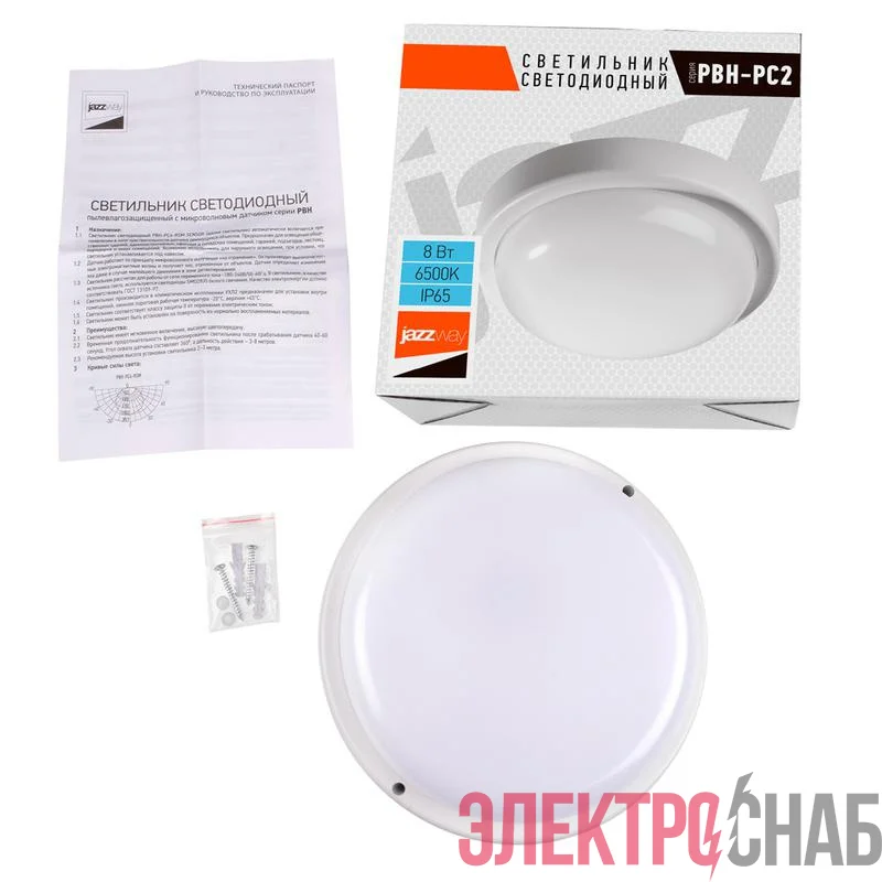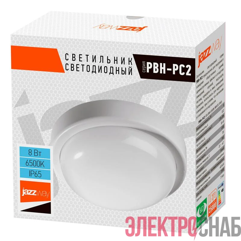5032262 | Светильник светодиодный "Банник" PBH-PC2-RA 8Вт 6500К IP65 ЖКХ ДБП кругл. пылевлагозащ. бел. JazzWay