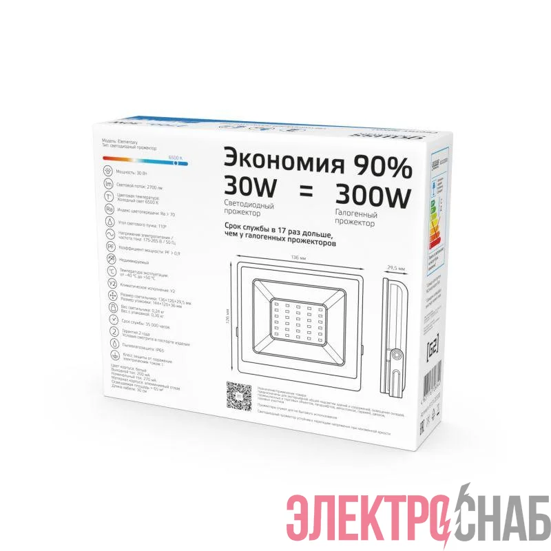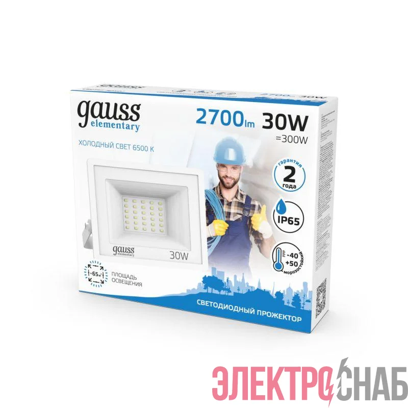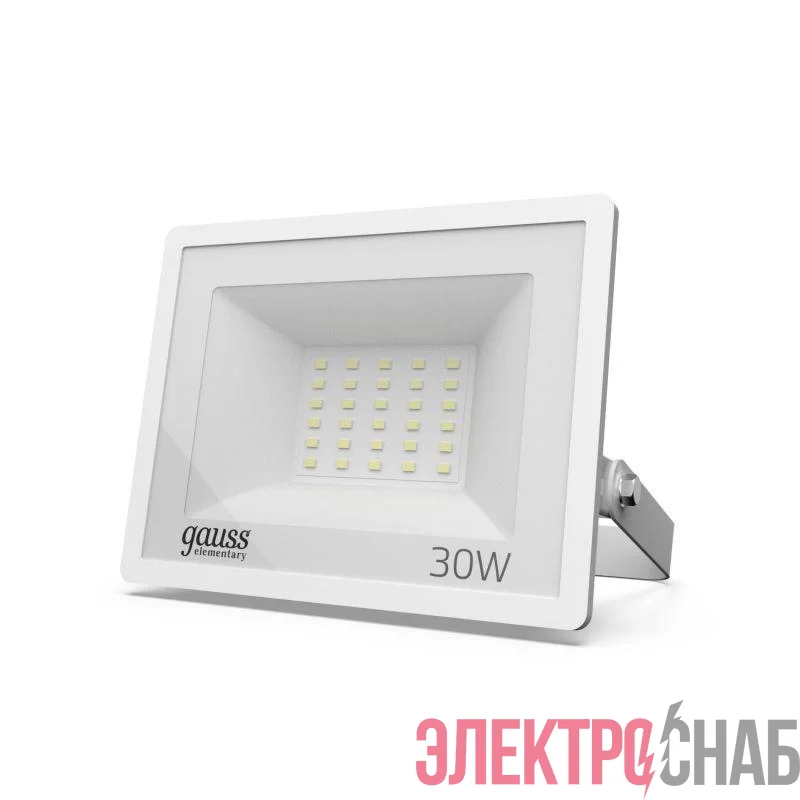 613120330 | Прожектор светодиодный Elementary 30Вт 6500К IP65 2700лм 200-240В ДО бел. GAUSS