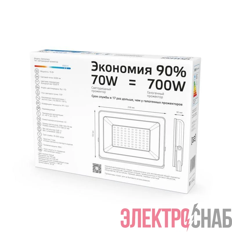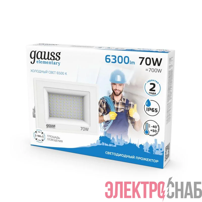 613120370 | Прожектор светодиодный Elementary 70Вт 6500К IP65 6300лм 175-265В ДО бел. GAUSS