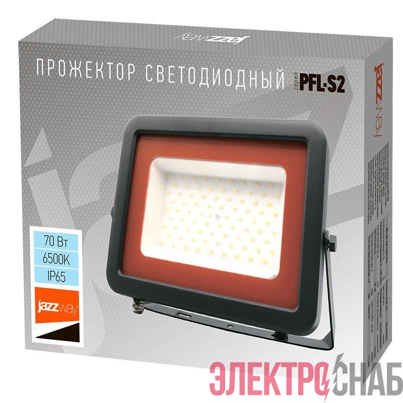 2853318D | Прожектор светодиодный PFL-S2 70Вт 6500К IP65 220–240В ДО с клапаном закален. матов. стекло сер. Pro JazzWay