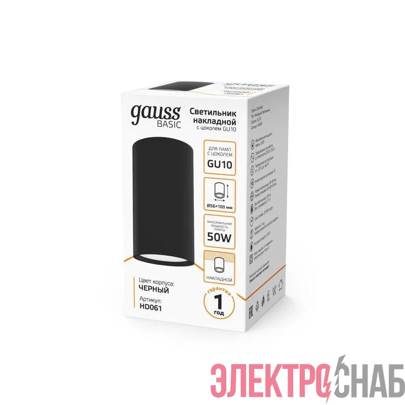HD061 | Светильник Basic накладной под лампу GU10 черн. GAUSS