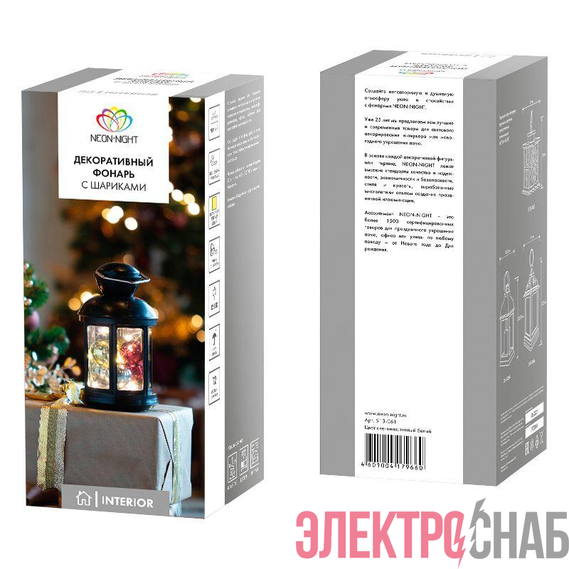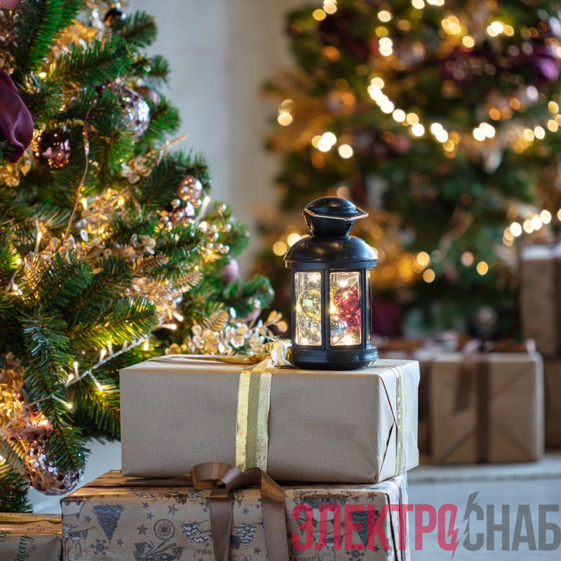 513-061 | Фонарь декоративный с шариками 12х12х20.6см тепл. бел. корпус черн. Neon-Night