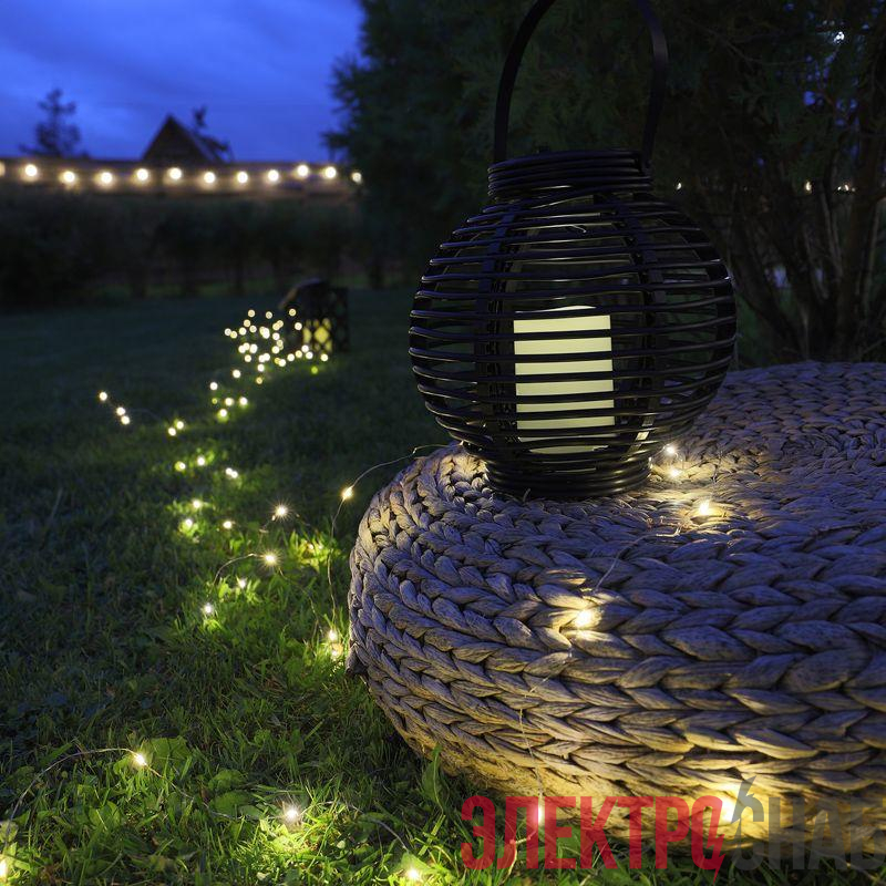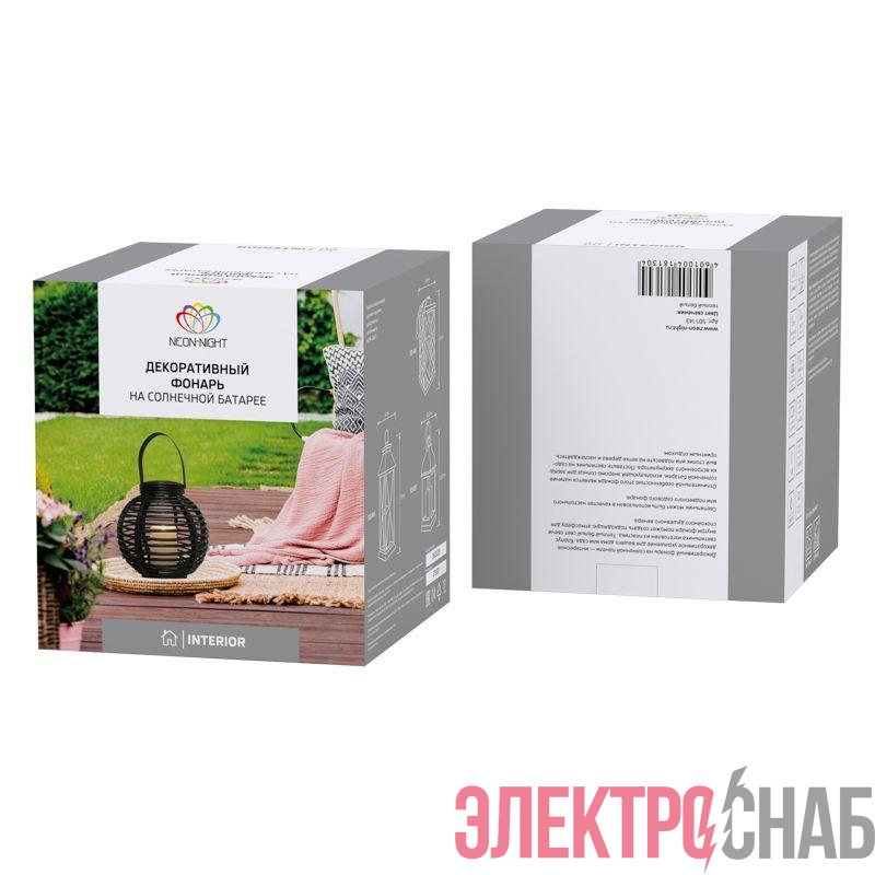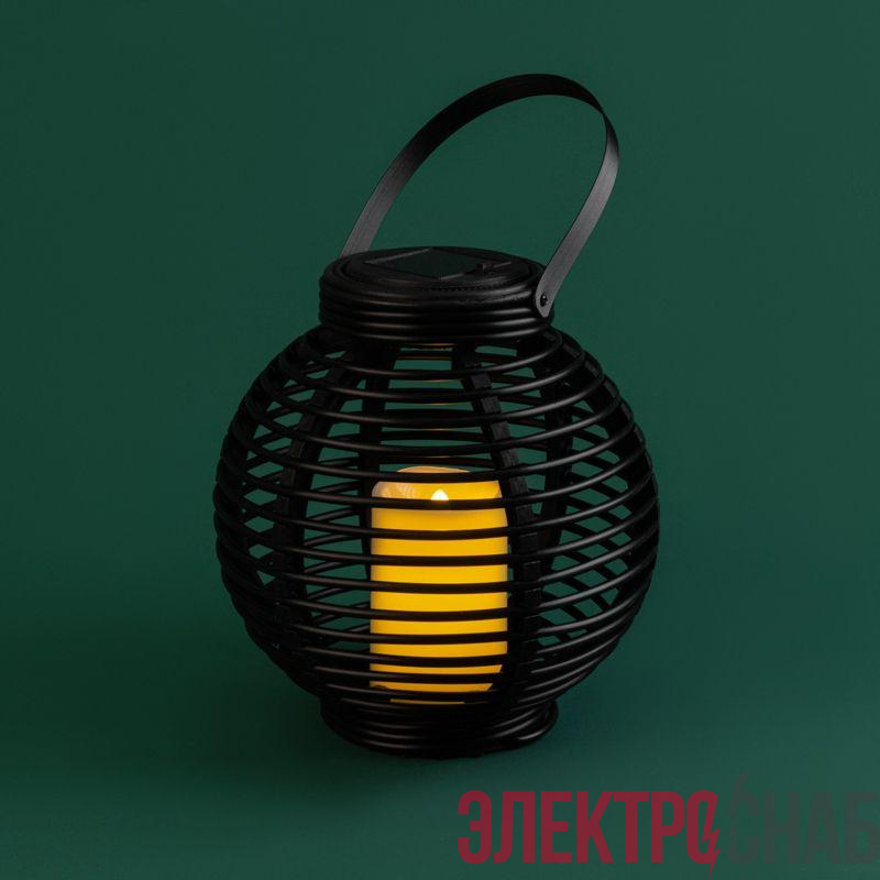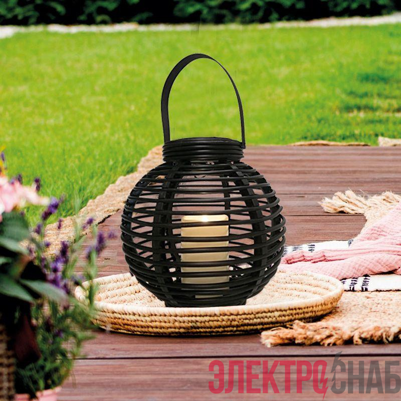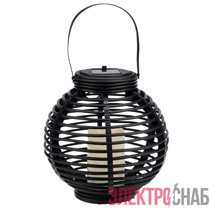 501-143 | Фонарь декоративный на солнечной батарее 20х20х22см тепл. бел. корпус черн. плетеный Neon-Night