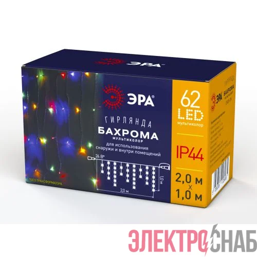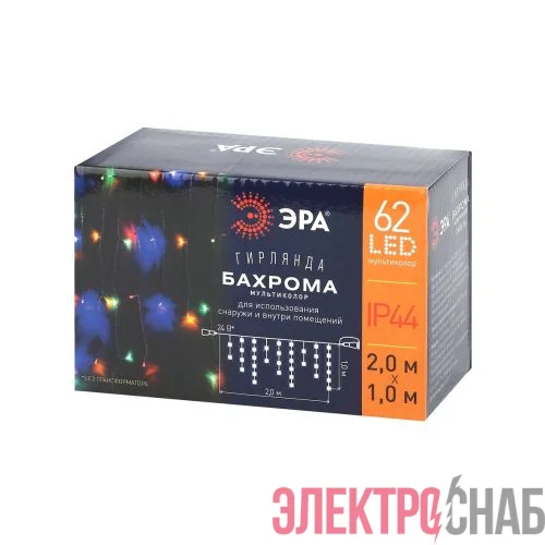 Б0041906 | Гирлянда светодиодная "Бахрома" 2мх1м 62LED 24В IP44 мультиколор ( без трансформатора Б0041911) ЭРА