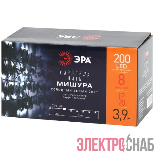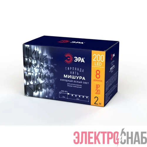 Новогодняя гирлянда-нить ЭРА "Мишура" с холодным белым светом отлично подходит для зимних праздников, в помещении она создает эффект мерцающего снегопада. Длина световой части - 2,4 метра, расстояние от вилки до первой лампочки - 1,5 метра. Гирлянда работает от стандартной электросети 220 В и потребляет минимальное количество электроэнергии. В ней установлено 200 светодиодов последнего поколения, это яркие и одновременно экономичные источники света. Гирлянда неслучайно называется "Мишура" - лампочки на ней расположены очень часто, ее свет выглядит объемно и "пушисто". Красивая и практичная LED-гирлянда ЭРА "Мишура" - идеальное решение, чтобы украсить елку, дом, создать атмосферу на праздничной вечеринке. Под настроение выбирайте любой из 8 режимов свечения.