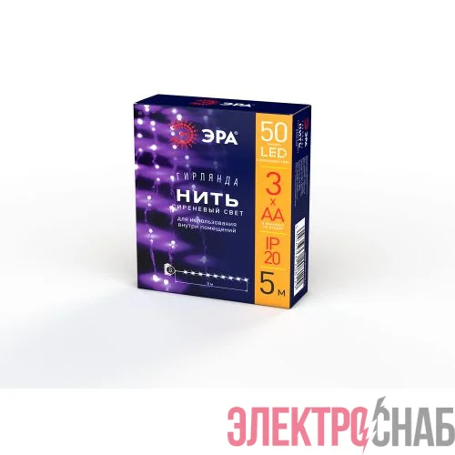 Б0047961 | Гирлянда светодиодная "Нить" 5м 50LED сирен. свет АА ЭРА