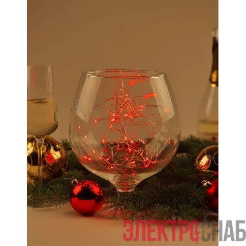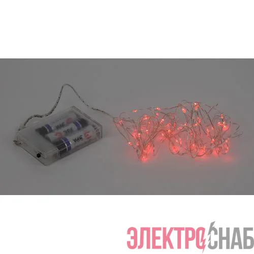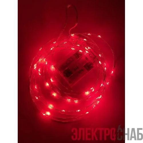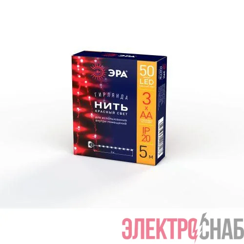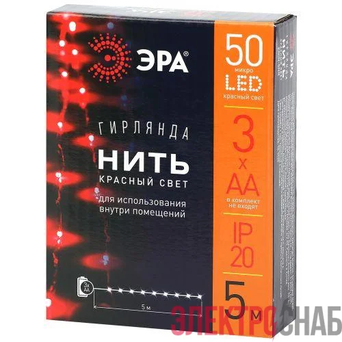 Б0047963 | Гирлянда светодиодная "Нить" 5м 50LED красн. свет АА ЭРА