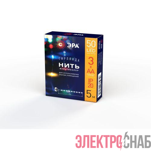 Б0047959 | Гирлянда светодиодная "Нить" 5м 50LED IP20 мультиколор АА ЭРА