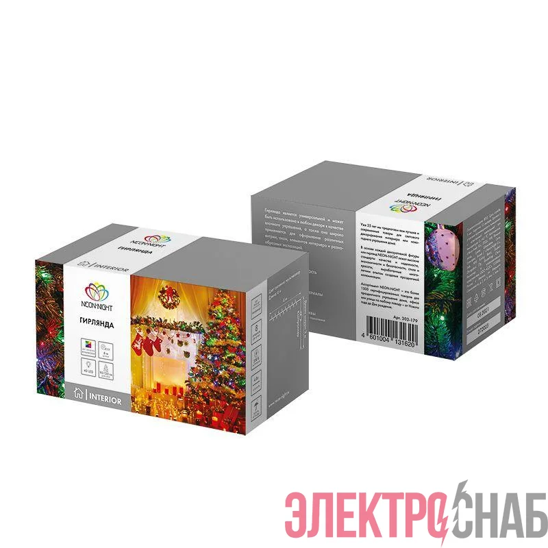 303-179 | Гирлянда "Твинкл Лайт" 6м 40LED мультиколор провод прозр. Neon-Night