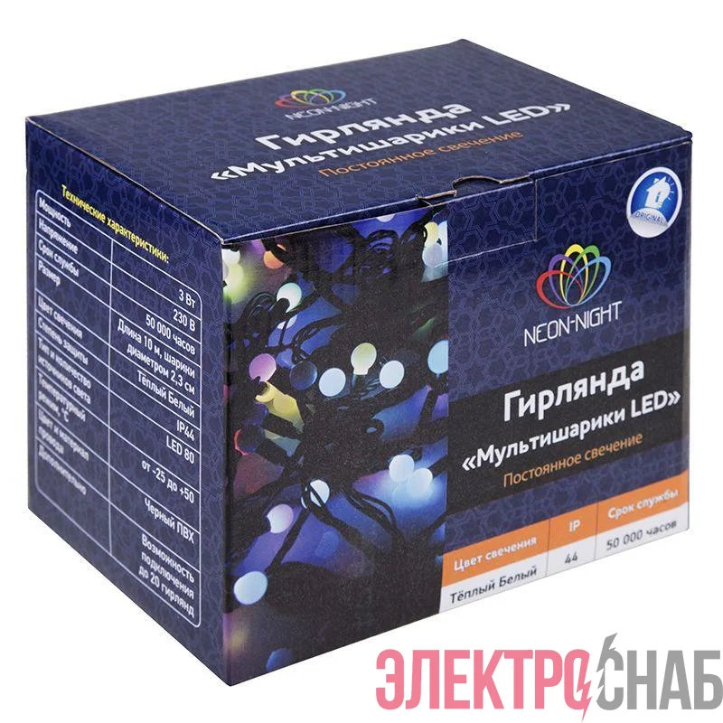 303-516 | Гирлянда "Мультишарики" d23мм 10м 80LED тепл. бел. провод черн. Neon-Night