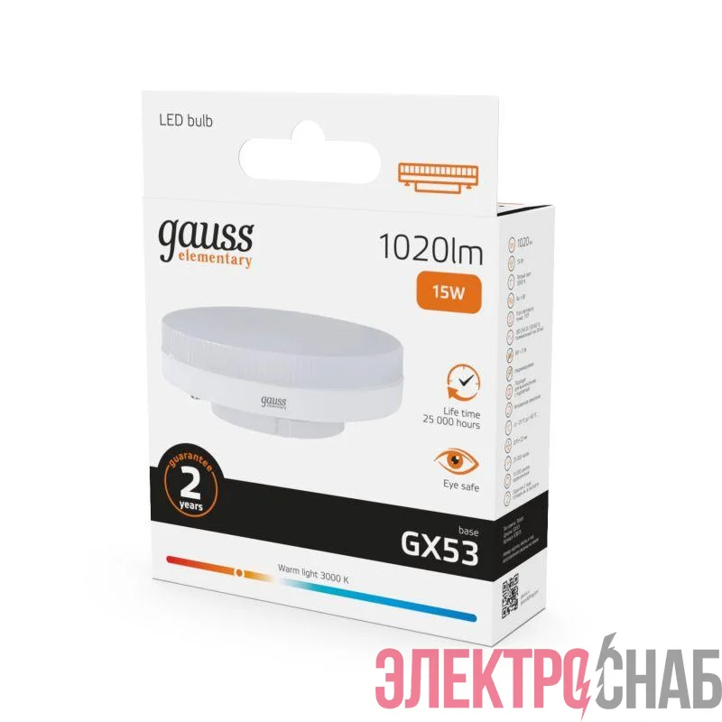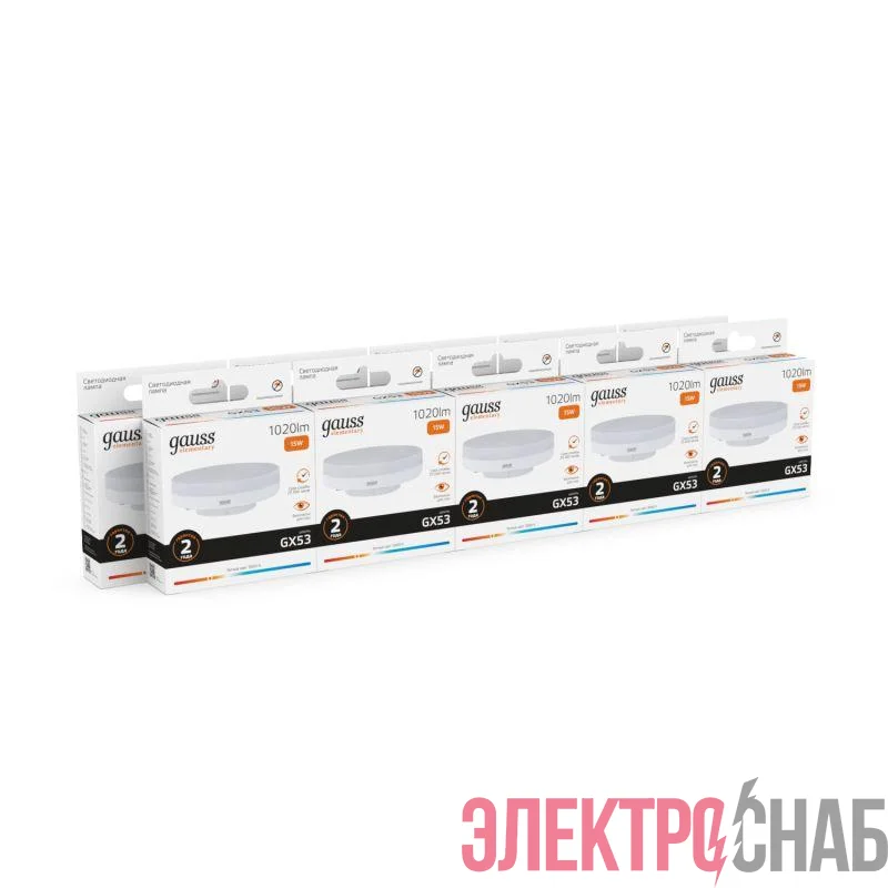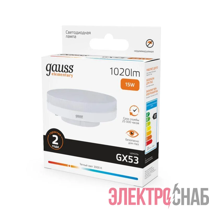 83815 | Лампа светодиодная Elementary 15Вт таблетка 3000К тепл. бел. GX53 1020лм GAUSS