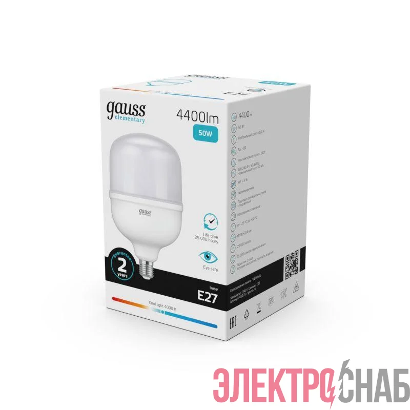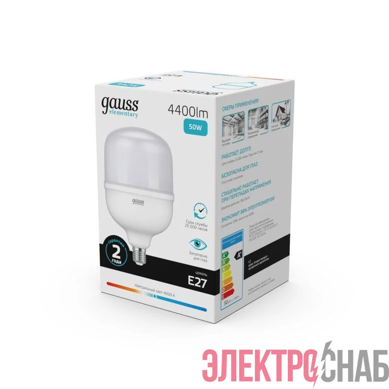63225 | Лампа светодиодная Elementary 50Вт T140 цилиндр 4000К нейтр. бел. E27 4400лм GAUSS