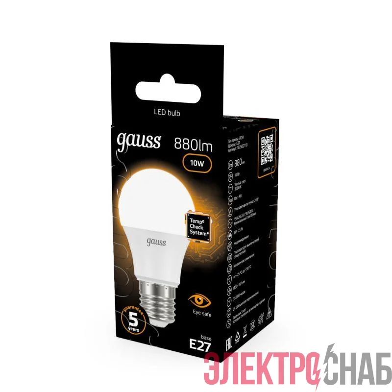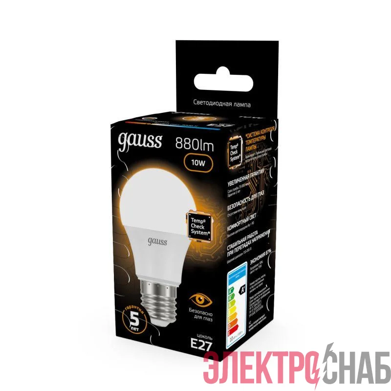 102502110 | Лампа светодиодная Black 10Вт A60 грушевидная 3000К тепл. бел. E27 880лм GAUSS