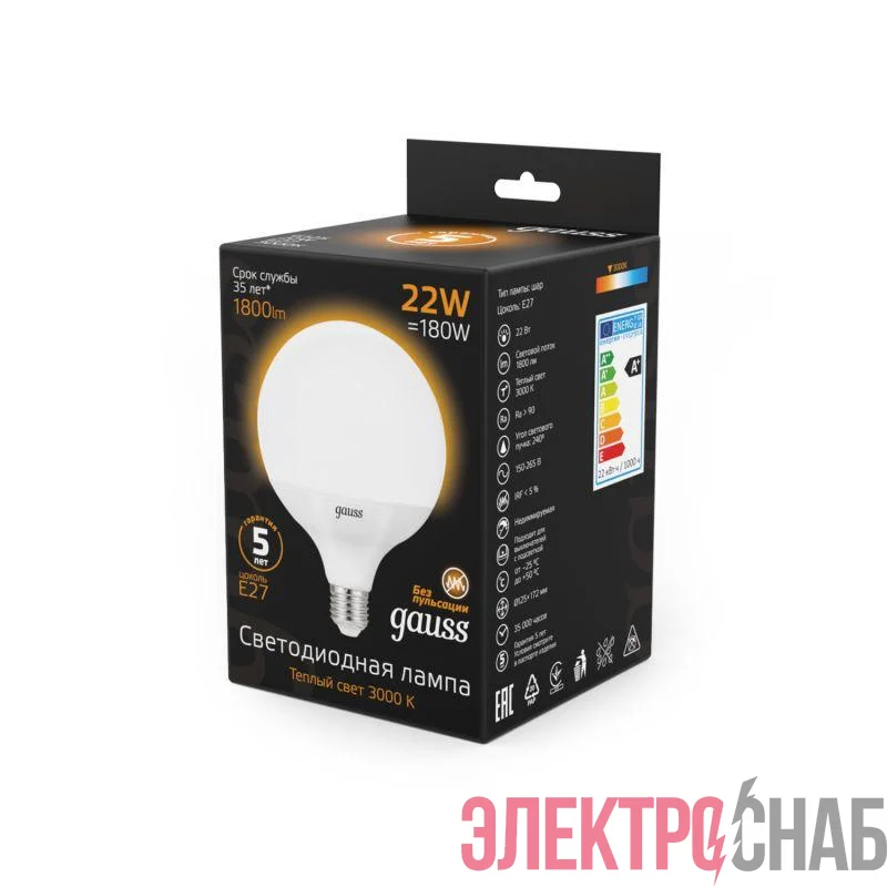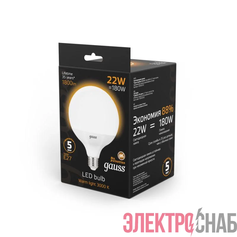 105102122 | Лампа светодиодная Black 22Вт G125 шар 3000К тепл. бел. E27 1800лм GAUSS