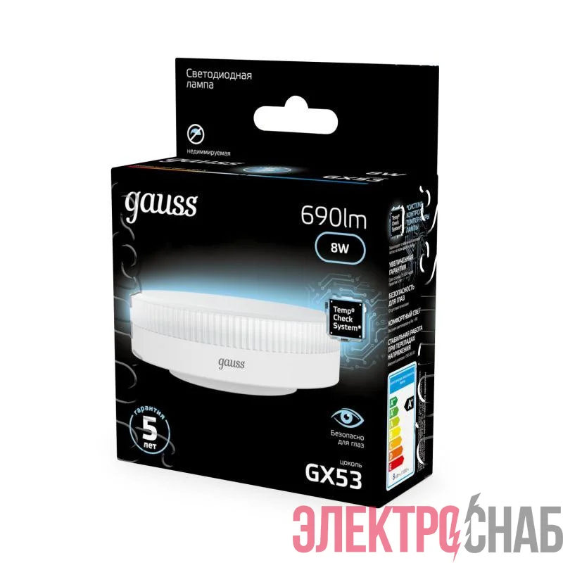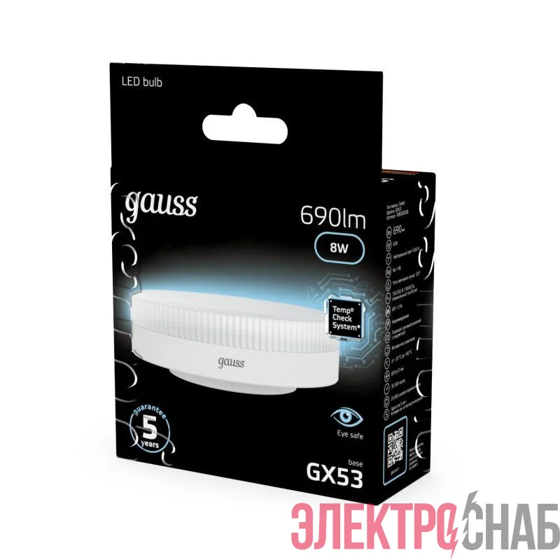 108008208 | Лампа светодиодная Black 8Вт таблетка 4100К нейтр. бел. GX53 690лм GAUSS