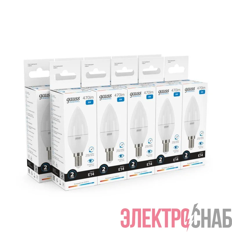 33136 | Лампа светодиодная Elementary 6Вт свеча 6500К холод. бел. E14 470лм GAUSS