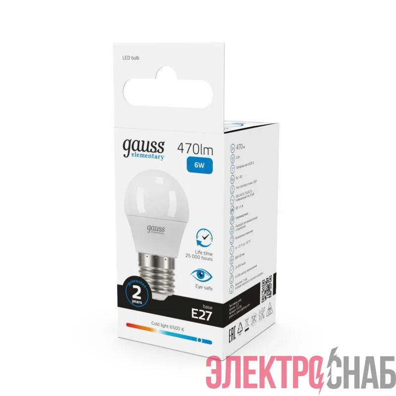 53236 | Лампа светодиодная Elementary 6Вт P45 шар 6500К холод. бел. E27 470лм GAUSS